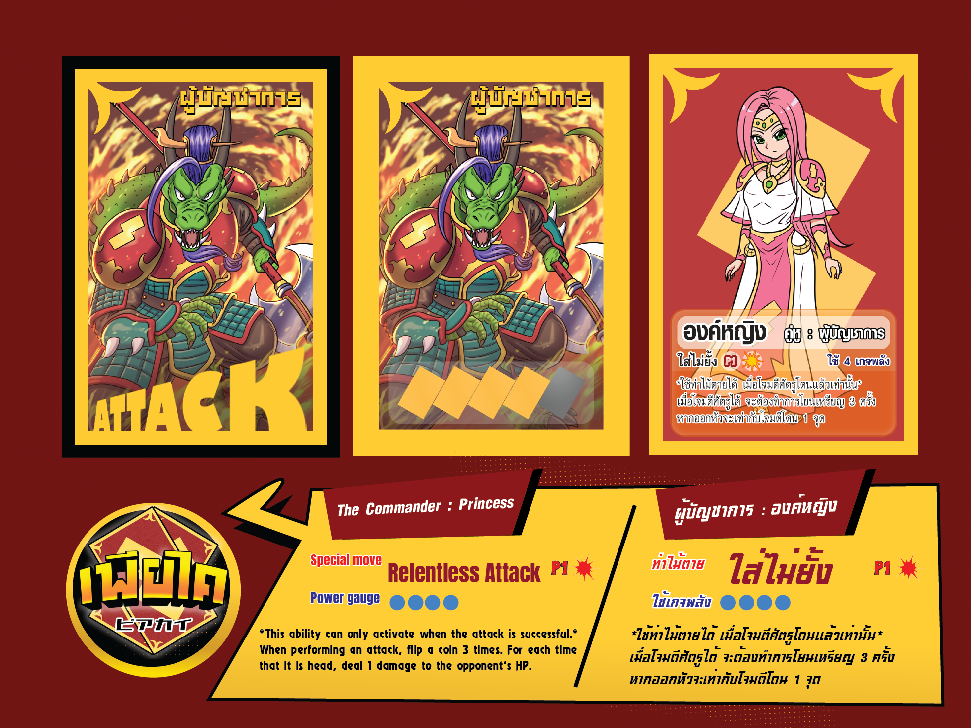 เมื่อโจมตีศัตรูได้ จะต้องทำการโยนเหรียญ 3 ครั้ง หากออกหัวจะเท่ากับโจมตีโดน 1 จุด"