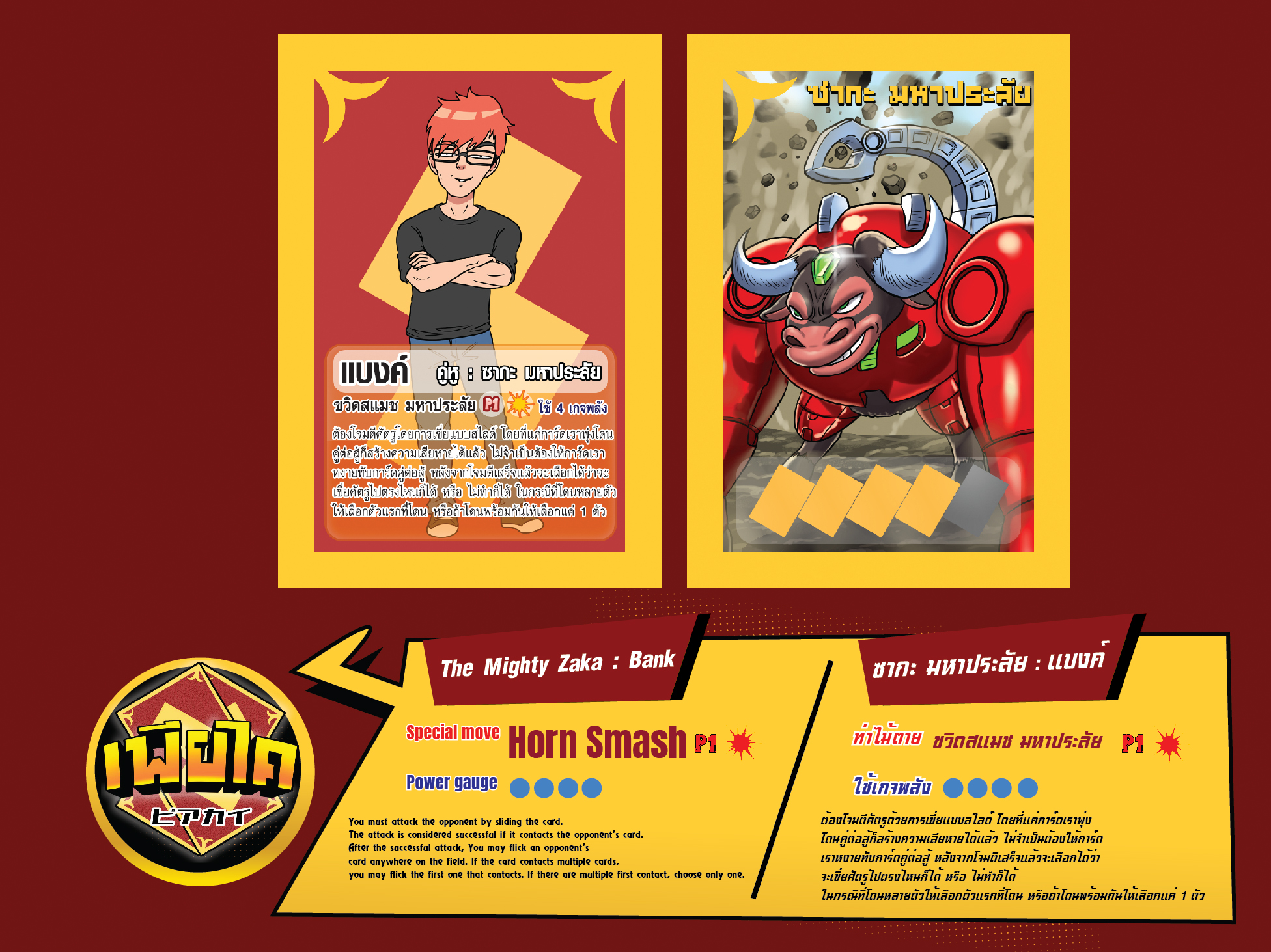 In addition of the Power gauge, Kaijudan must spend 0.5 HP to place a power ball in the area of 1 centimeter from the card. Kaijudan can shoot a power ball to hit other cards. If the ball hit opponents' card, all hit opponents will lose 1 HP immediately whether it face-down or face-up.